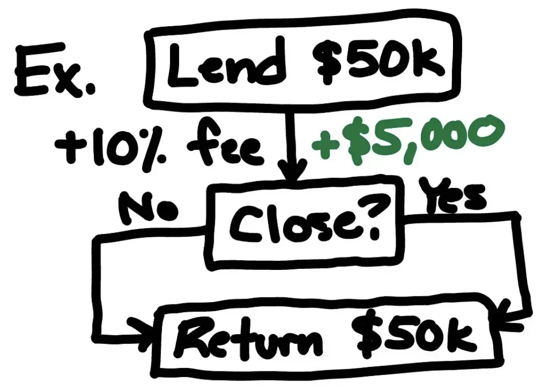 For EMD, we charge the entire fee up front to pay our team for underwriting and processing the deal. Sadly we must do this so we don't end up losing money by funding your cancelled deal. This is significantly lower than what most people charge when a deal closes, so if you're confident in your deal you'll save lots of capital.